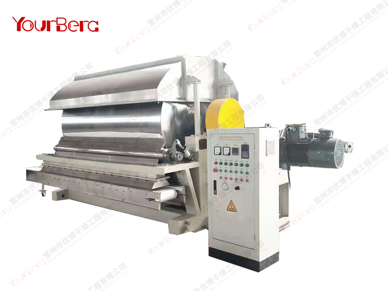 3、干燥时间短。物料的干燥周期一般只有10-300秒,在适合于热敏性物料。若将滚筒干燥机设置在真空器中,则可在减压条件下运行。